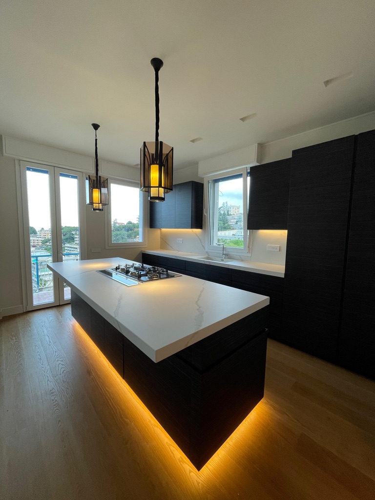 La ristrutturazione della Villa LA a Sanremo ha trasformato 170 m² in una residenza moderna ed efficiente. Con un rifacimento facciata di alta qualità e un impianto elettrico all'avanguardia, la villa ora offre comfort ed eleganza, garantendo un ambiente sicuro e accogliente per i suoi abitanti.
